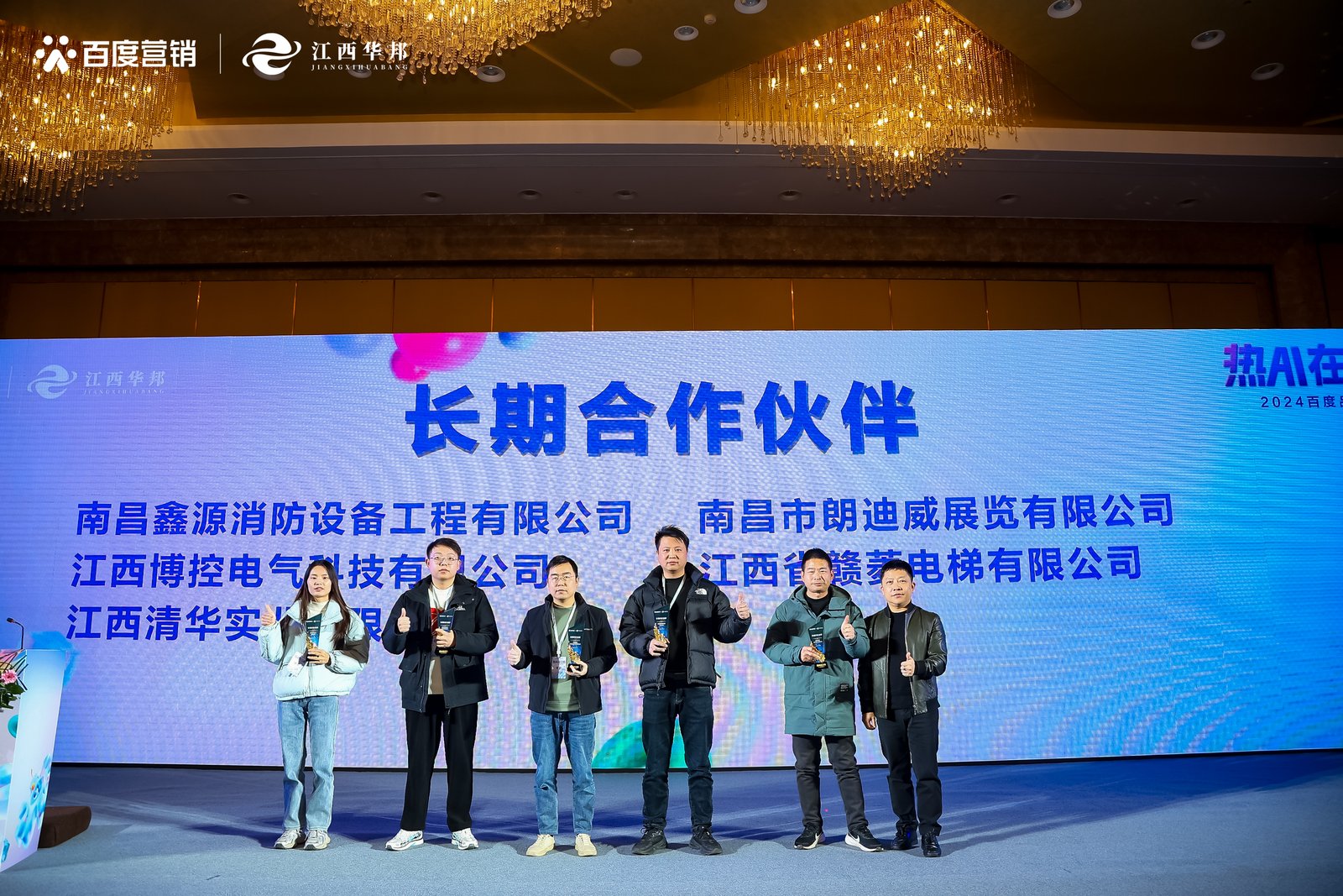 12月19日,熱AI在江西 · 2024百度品牌之夜在江西南昌力高皇冠假日酒店燃擎啟幕,百度渠道發(fā)展部華中大區(qū)經(jīng)理李振洲、百度內(nèi)容營銷產(chǎn)品負(fù)責(zé)人呂耕、百度渠道銷售發(fā)展部江西區(qū)域經(jīng)理董鍵、江西華邦傳媒有限公司總經(jīng)理劉剛、江西華邦傳媒有限公司常務(wù)副總經(jīng)理呂永泉、江西華邦傳媒有限公司推廣運(yùn)營部副總經(jīng)理龔莉、江西華邦傳媒有限公司推廣運(yùn)營部全省企業(yè)大區(qū)經(jīng)理聶紅等***出席本次活動。