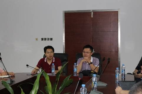 圖為胡志堅(jiān)主任(左)和葛李保副調(diào)研員(右)講話