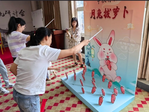 2023年這個中秋,一場妙趣橫生卻又***挑戰(zhàn)的活動精彩上線:玉兔拔蘿卜。"釣蘿卜"講究的是足夠的耐心和微妙的技巧,手持一根吊桿,屏氣定神,將外界的噪雜都拋之腦后,隨著一個個蘿卜被帥氣釣起來,現(xiàn)場歡呼聲此起彼伏,好不熱鬧,這個中秋也太快樂了吧~